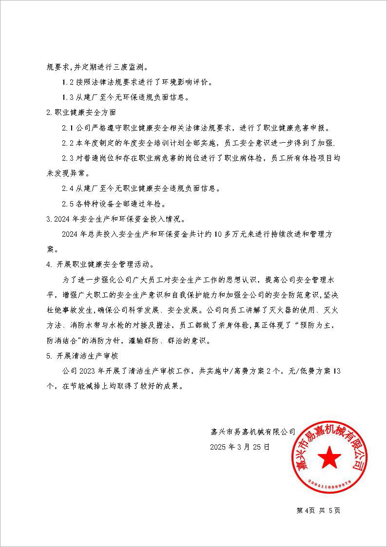 嘉興市易嘉機(jī)械有限公司企業(yè)社會(huì)責(zé)任報(bào)告(2024年度)